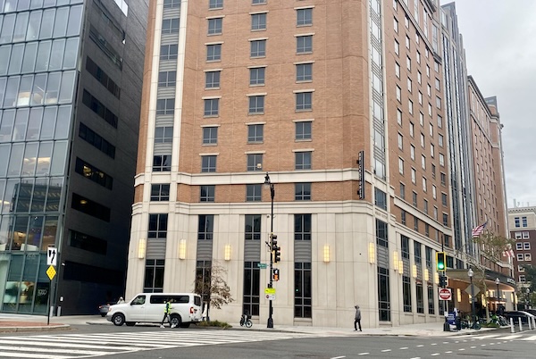 At corner of 14th and K Streets in the heart of downtown DC, across from "McPherson" metro station. Built in 1922, blending Beaux Arts and Art Deco styles. Fitness center. "14K Restaurant" offers classic American cuisine.
